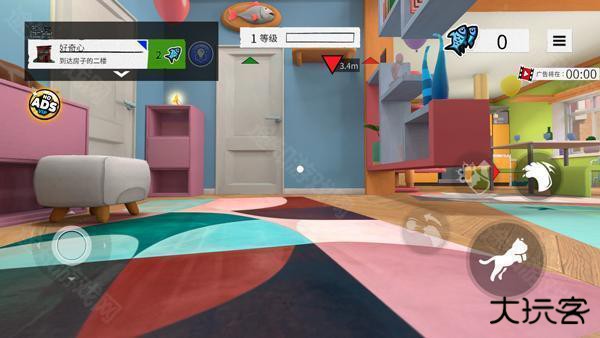2、触摸屏幕操控猫咪进行移动,去自由探索房间,发现不一样的玩法。
