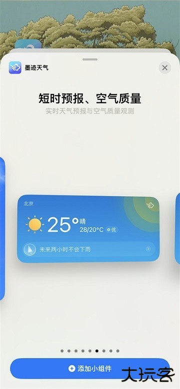 3. 继续下滑,找到墨迹天气小组件,选择合适样式,点击【添加】即可完成设置。