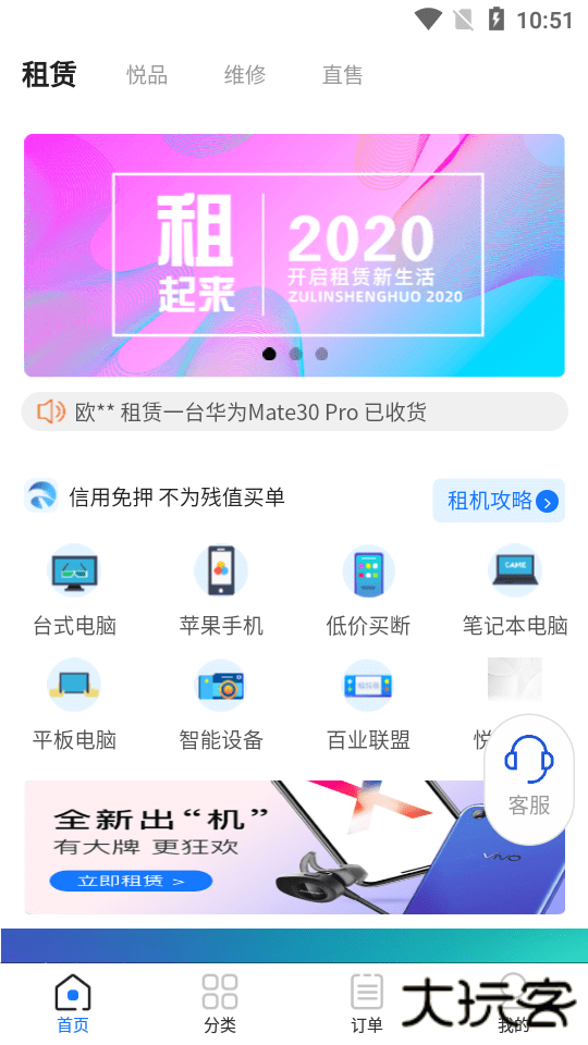 2、超悦租app,掌上便捷的手机租赁平台,软件提供苹果手机,安卓手机,台式电脑,