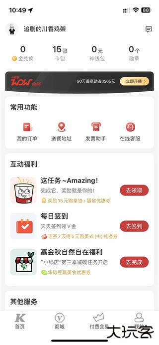 1、在肯德基我的界面,选择一下发票助手。