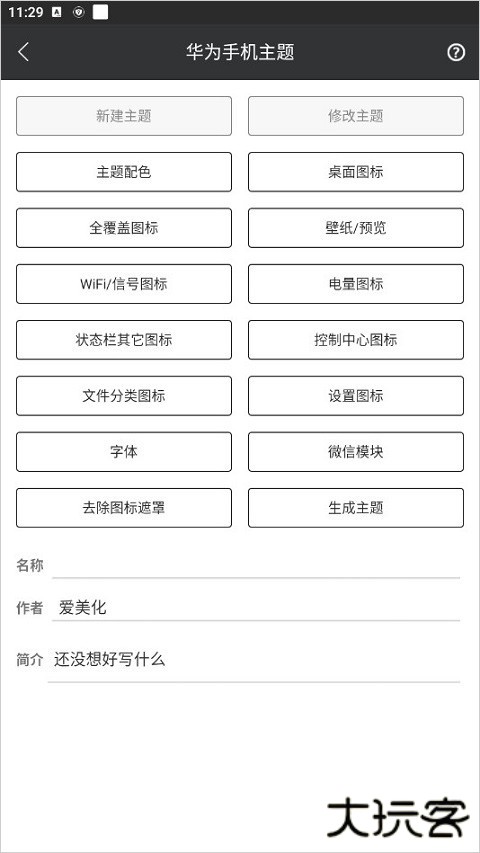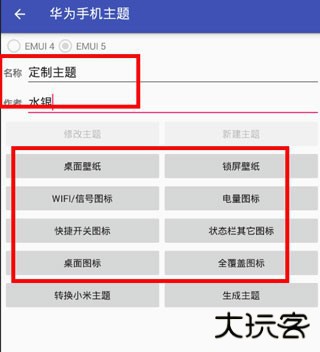 3、输入主题名称和作者名,编辑喜欢的主题图标。