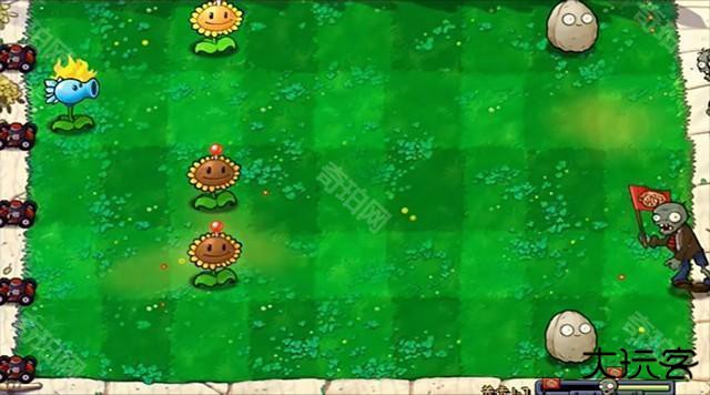 3、前面几关比较简单,消耗阳光就能种植植物,击败僵尸就能通关。