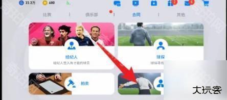在实况足球手游主界面,点击合同。