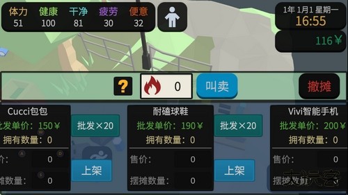 14、长时间在家专注于直播的我,终于决定外出散心,无意间还体验到了游戏里的 “摆摊” 玩法。只需采购商品并设定好销售数量和价格,就可以开始摆摊营业。在摆摊过程中,主动消耗体力进行 “叫卖” 才能有效地吸引更多顾客前来购买。