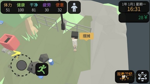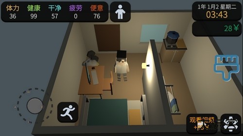 2、开局阶段,便利店兼职依然是最快积累初始资金的途径。感到饥饿时,购买薯片或士力架是恢复体力的快捷选择。当清洁度下降,路边随处可见的水龙头可以提供简单的清洗。