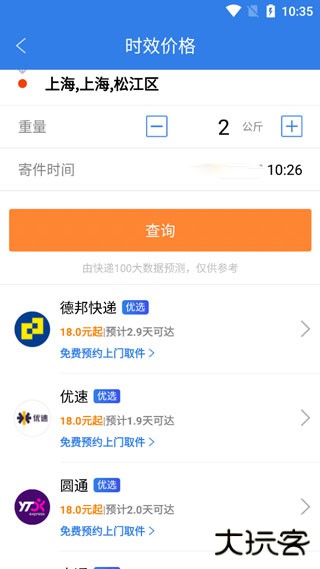 3、实时掌控,还可以利用这个软件来寄送快件,可以随意的挑选快递公司,还可以提供上门取件的功能。