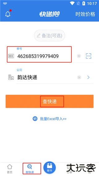 1、在查快递板块,输入快递单号,点击查询;