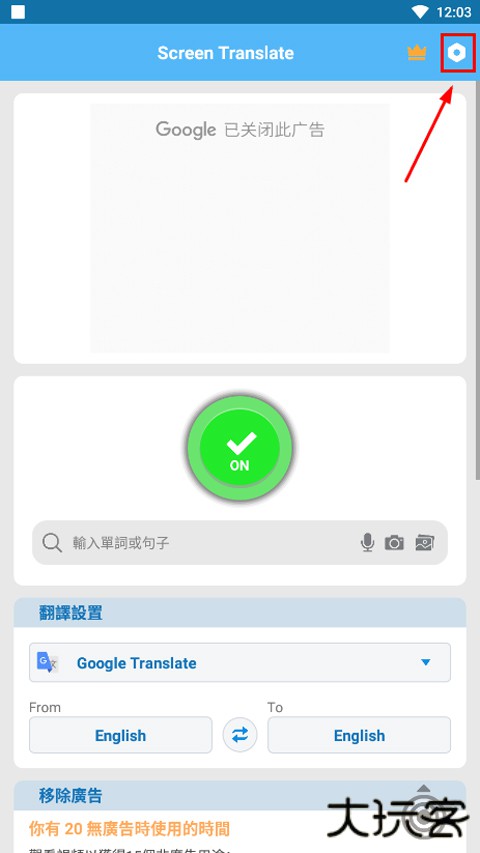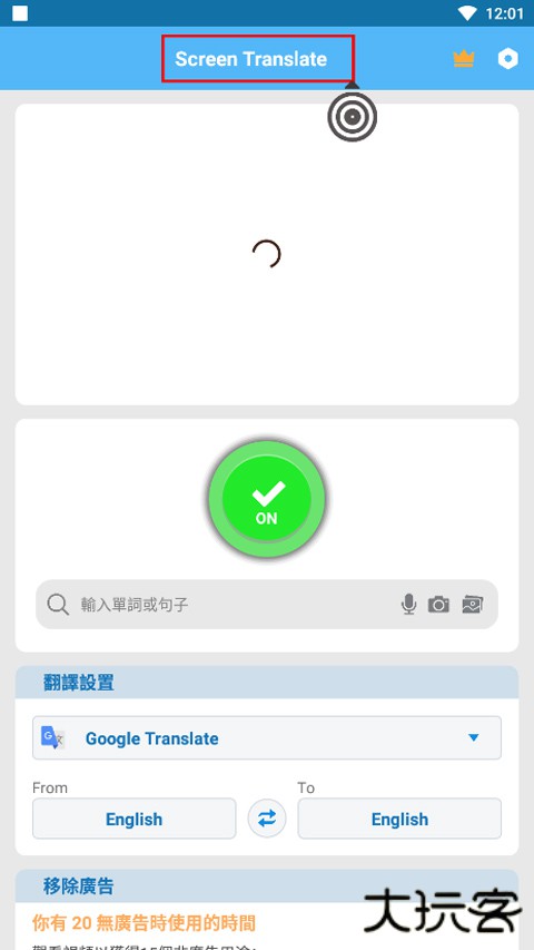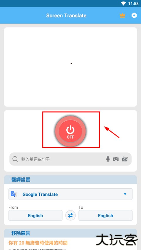 1、打开Screen Translate屏幕翻译器,首先点击红色OFF键