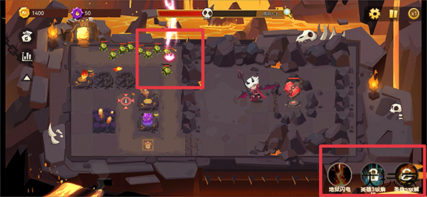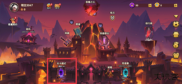 6、随着关卡的解锁,敌人也会越来越强,因此玩家还需要为恶魔心脏和英雄提升等级来增加战斗力,血量,解锁英雄技能等等