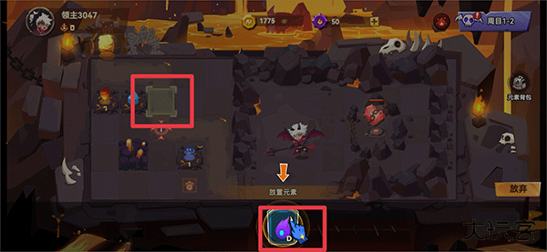 2、进入游戏后,在敌人出现途径旁的空白处放置元素