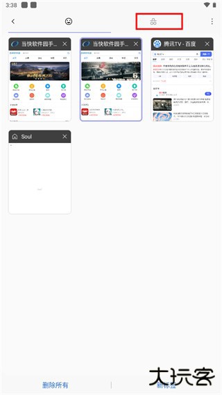 3、无痕浏览:点击突变图标,切换至无痕模式,并查看已打开的所有页面。