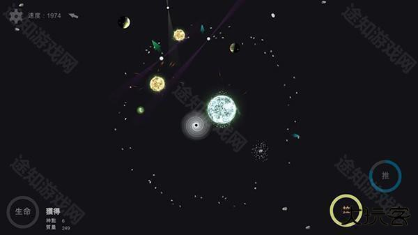 质量是宇宙中的一切。大质量的星球总是可以摧毁其他质量较小的星球。因此,寻找到较小质量的星球并吸收它们,远离重质量星球是沙盒宇宙中的生存法规。