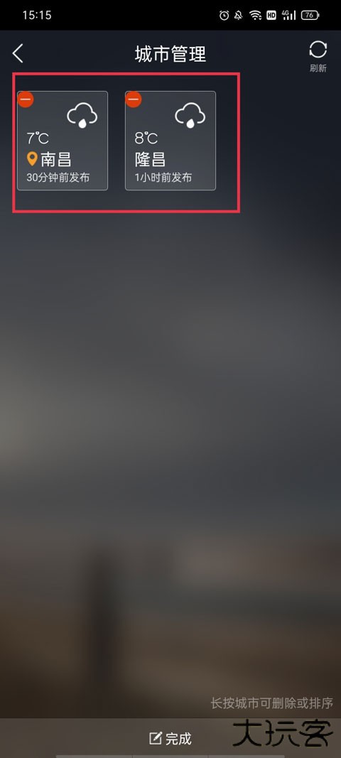 2、接着点击顶部的城市名称直接进入城市管理界面。