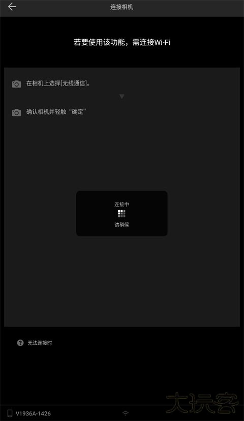 3、再次点击设备进到相机导入界面,选择“即时取景拍摄”你需要开启你的相机WiFi,在app上选择相机设备进行即可连接。