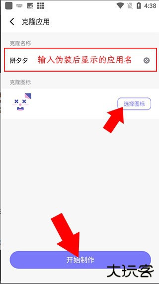 3、重命名软件名称并选择图标,这里我将其命名为拼夕夕,然后点击选择图标,选择拼夕夕的图标