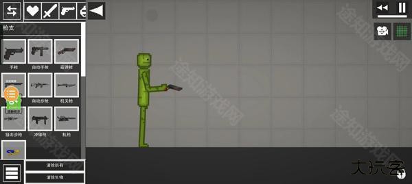 2、进入游戏如图,点击左上角菜单按钮,添加两个物品在地上;