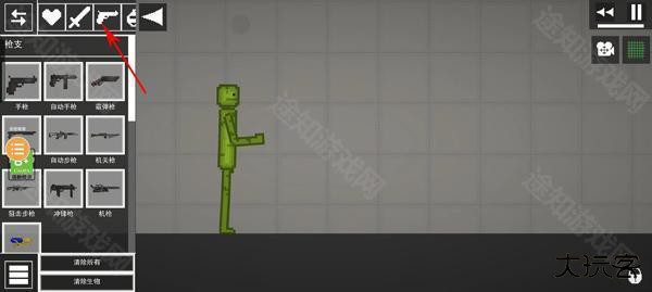 4、胳膊停住在空中停住之后,我们需要在左上角选择械图标去选择械;