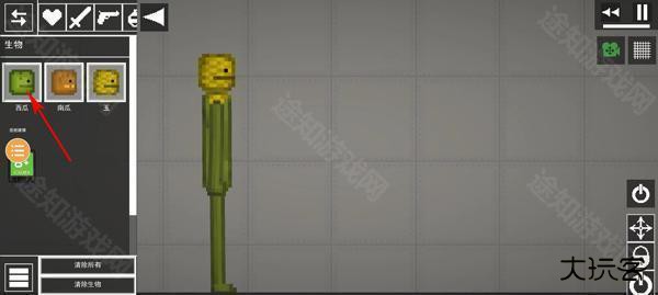 1、进入游戏之后,首先我们需要创建一个生物人,在左上角找到爱心图标点击,然后在西瓜、南瓜、玉中选择一个生物人;