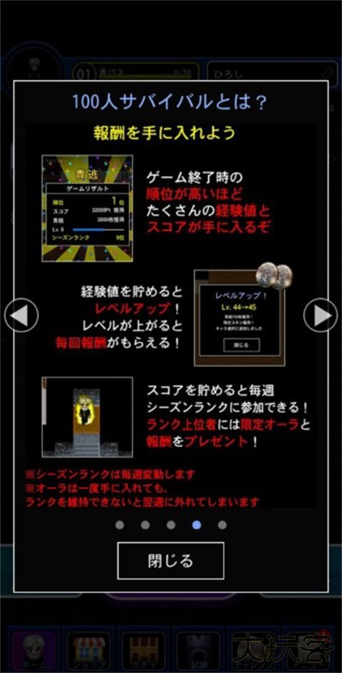 根据生存时长进行实时排名,较高名次玩家将获得更多经验值。经验积累满额后可提升角色等级属性。