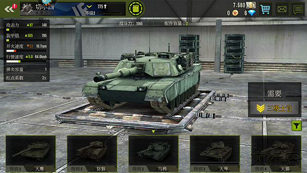 3、坦克获取: 钻石买顶级坦克(需充值),军费买普通坦克(战斗拾取)。购买坦克和进入新地图都需要达到相应等级。