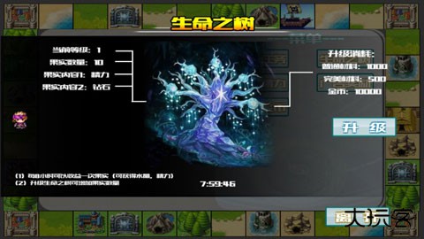 4、生命之树是资源核心:收集到必要的特定材料后,能够用来提升生命之树的等级。它的升级非常重要,可以直接提升果树产出果实的速度和频率,也会增加游戏里钻石的获得总量。