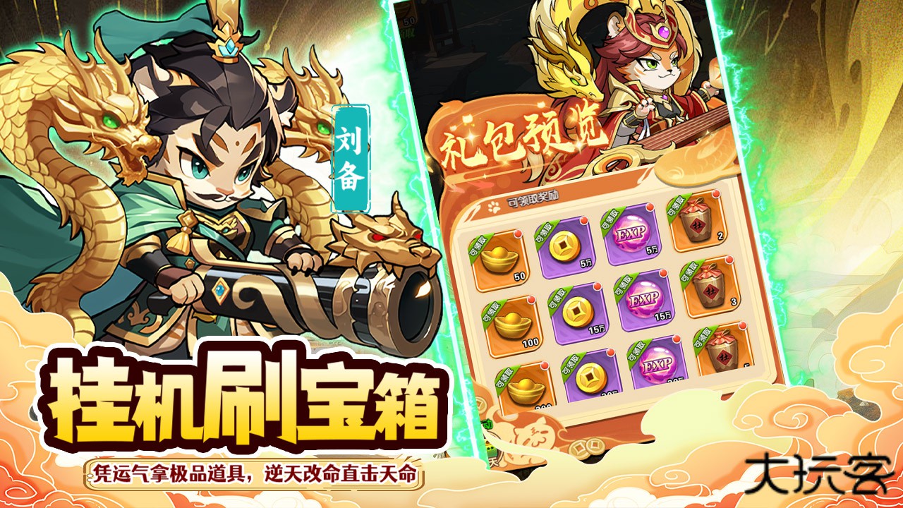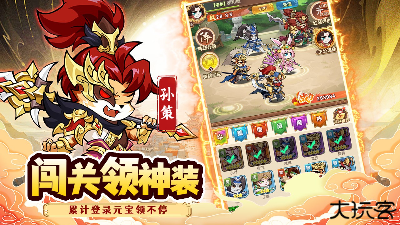 1.超萌兽化猫咪造型将三国名将变身可爱猫武士,诸葛亮化作智慧布偶猫,关羽变成霸气橘猫,每个角色都保留标志性特征,战斗特效充满萌趣。