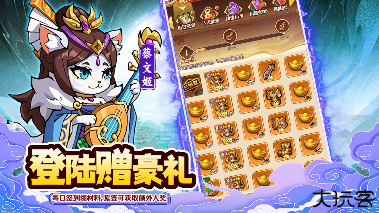 3.新玩家专属福利,连续登录8天即可领取五星顶级武将和全套资源包,快速组建强力阵容轻松开局。