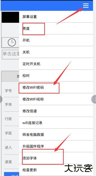 2、然后在选项菜单,可以修改【亮度】【wifi密码】和【字体】等设置。