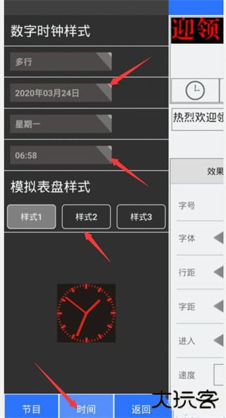 2、文字效果可自定义设置,包括颜色、特效及动态显示模式。