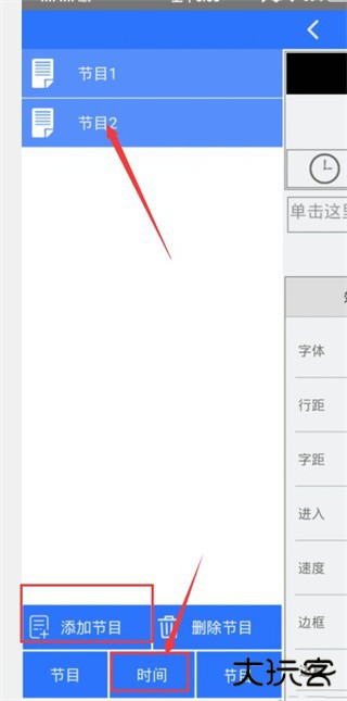 3、点击左边小箭头进入【节目】设置【添加节目】然后点击【时间】。