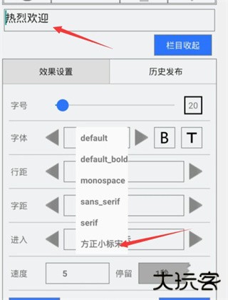 5、在【栏目】内输入LED显示的文字下边设置文字效果。