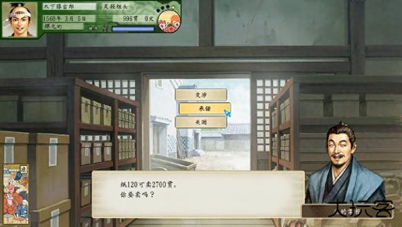 随后来到下方的界之町把纸卖掉,没想到竟然可以卖2700贯,发财了!
