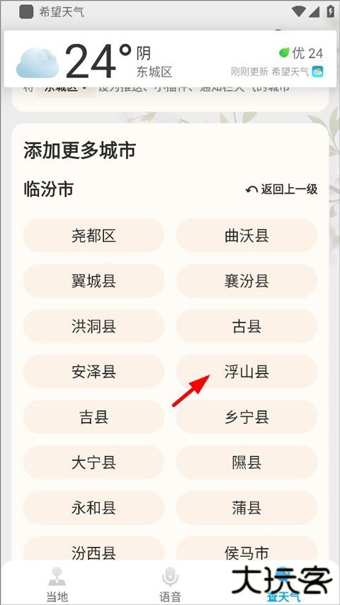 4、打开添加城市选项,按照省-市-县-乡/镇的顺序逐级找到精确位置即可。