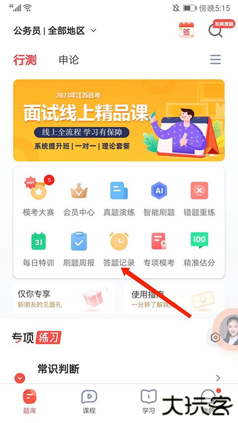 1、打开华图在线app,选择“答题记录”选项,