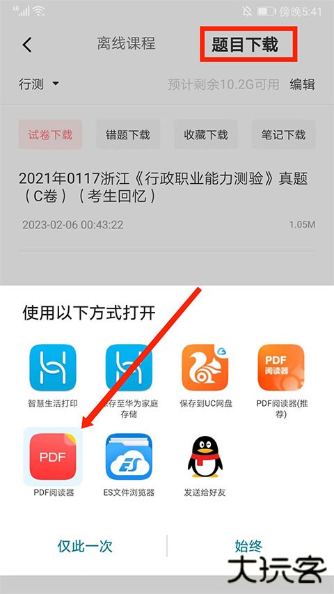 3、选择“题目下载”界面,点击需要打印的卷子,然后选择打开方式,