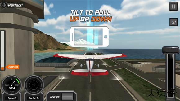 3、游戏是依靠重力感应来操控飞机的,上下翻转控制飞机的攀升和降落,左右控制飞机的转向。