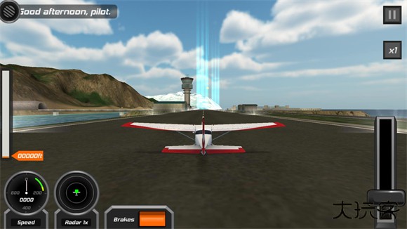 4、起飞时需要先将拉杆推到最高,等速度到达左边表盘的绿色区域就可以让飞机攀升起飞了。