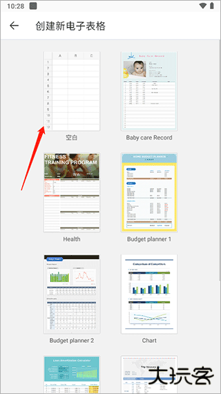 3、你可以选择新建空白电子表格,也可以选择使用软件内提供的模版