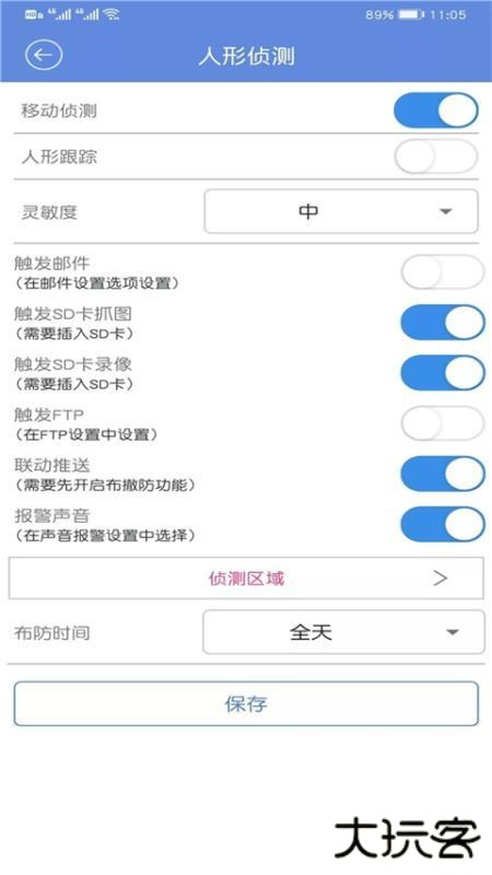 6、 设备设置界面——人形侦测设置,可设置人形侦测触发各项功能