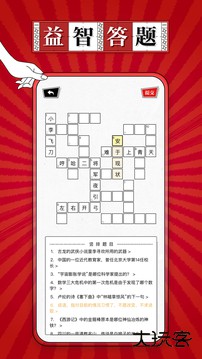 游玩界面:提供10×10填字网格,支持优先填写会答的题目,通过共用字获取提示,操作便捷。