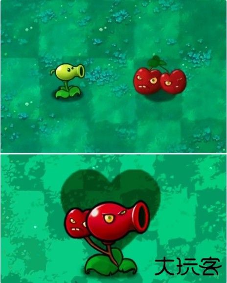 使用豌豆射手和两个樱桃炸弹进行融合,发射樱桃炸弹豌豆,但是发射频率有所降低