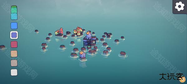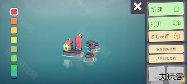 2、点击右上角齿轮按钮打开设置,点击新建,玩家可在水面上建造房屋;