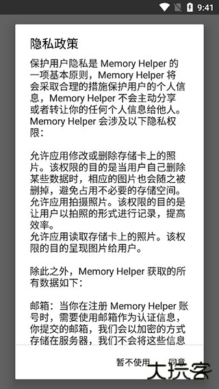 1、下载本站提供的记忆助手工具安卓版,首次进入软件需要同意隐私协议;