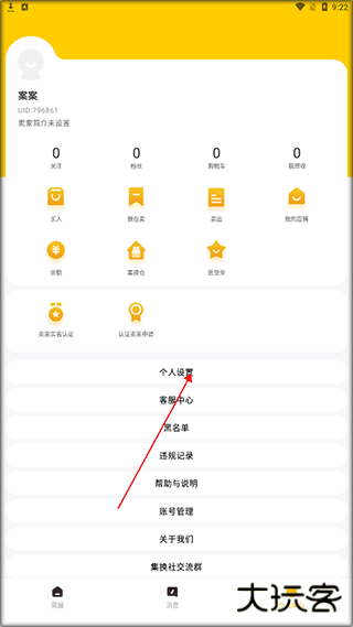在个人中心的“关注”页面,可以通过输入卖家的昵称或UID来搜索。