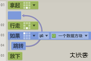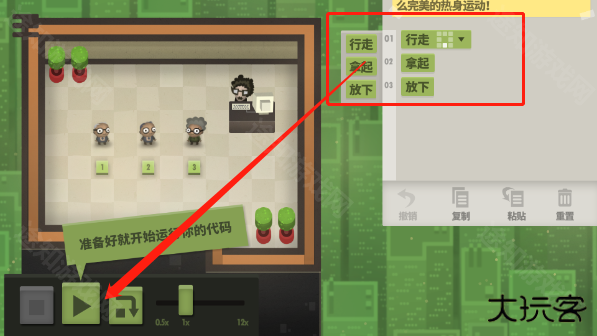4、游戏内我们需要在编辑框内输入代码组合,点击左侧运行代码以达到游戏要求的目标行为