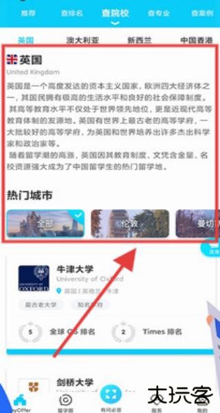 3、提及英国教育优势,是中国留学生热门目的地,还展示牛津大学等院校,有热门城市推荐。