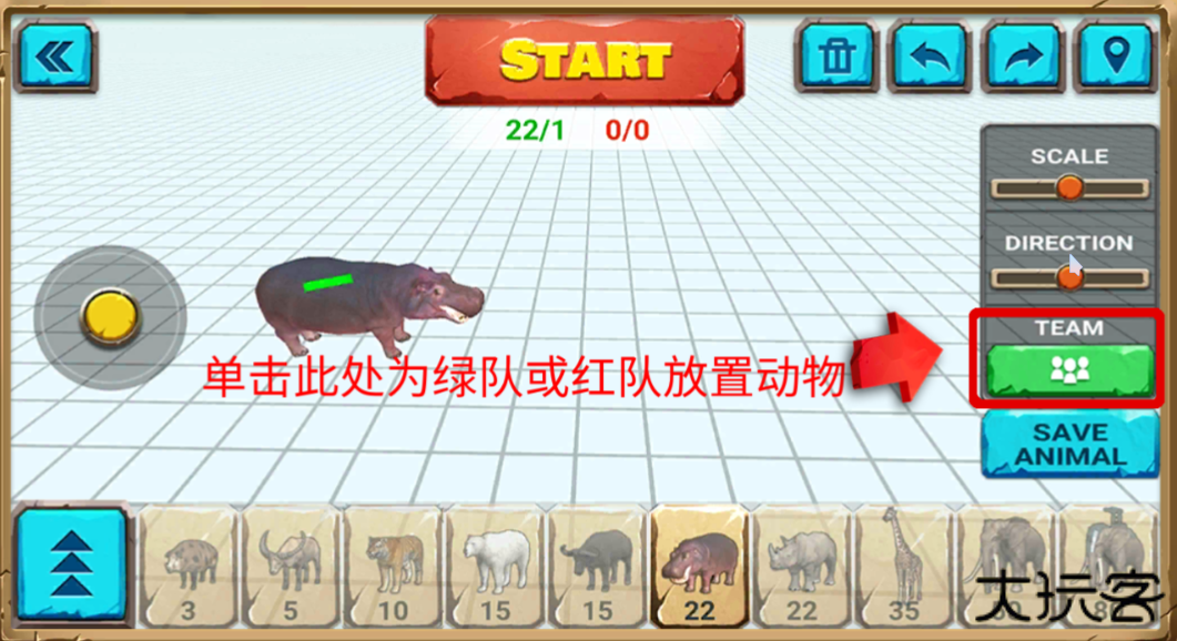 9、单机TEAM这个选项为绿对或红队放置动物