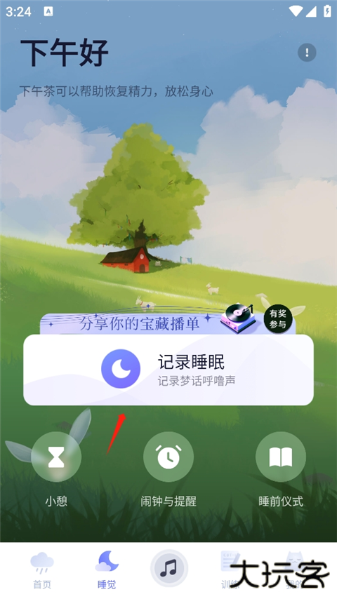 1、用户打开应用进入首页选择下部菜单栏中的"睡觉",点击"开始记录睡眠"。