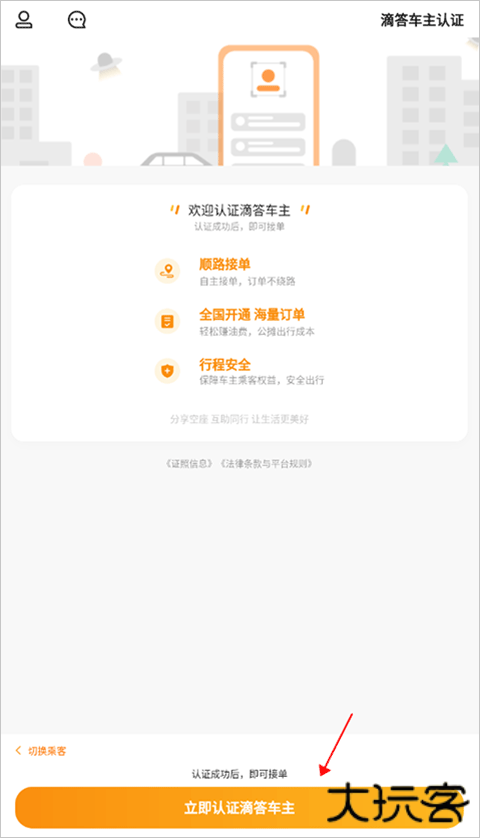 3、点击页面下方的“立即认证滴答车主”认证之后即成为顺风车司机接单