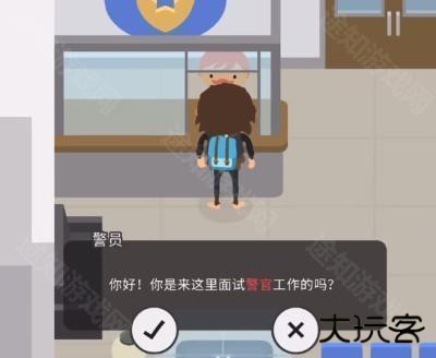 2、之后就需要与警察局的前台进行对话,在【你是来里面试警察工作的吗】,之后选择是。